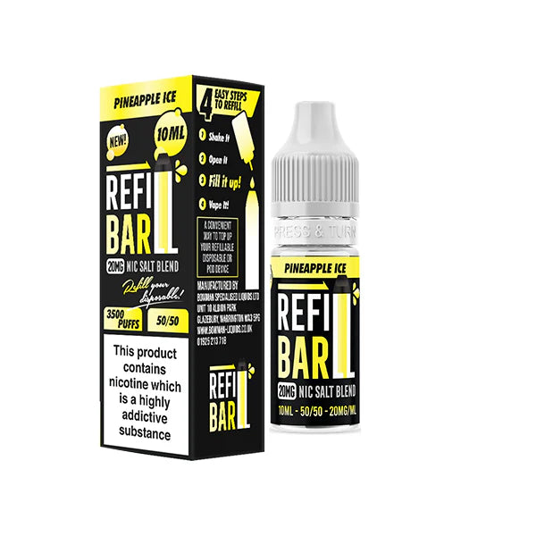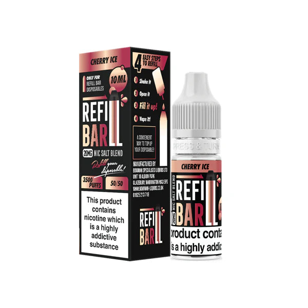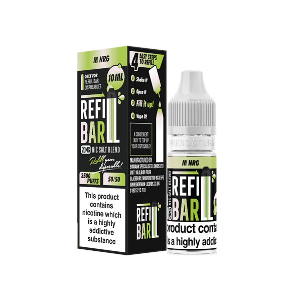 For only Refill Bar Disposables, this flavourful range of 20mg Refill Bar Salts offers various flavours for vapers to enjoy when they need a refill. The 10ml bottle is designed to be a convenient way to top up your Refill Bar Disposable device with the nic salt blend flavour of your choice. Each flavour will last up to around 3500 puffs to offer much more affordable and longer lasting vaping experiences than just your standard single use disposable vape.