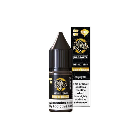 Transform your vaping experience with 20mg Ruthless Bar Salts 10ml, a premium nicotine salt e-liquid designed for smooth satisfaction and intense flavour. Each 10ml bottle contains a perfectly balanced 50% VG and 50% PG blend, ensuring optimal performance in most vaping devices, especially mouth-to-lung (MTL) kits such as pod systems and vape pens. This formulation delivers a powerful punch of 20mg nicotine, providing a smooth throat hit and rapid nicotine absorption for a sensation reminiscent of traditional cigarettes. The e-liquid is crafted to deliver disposable bar-style flavours in a refillable format, offering convenience without sacrificing taste. With a childproof cap and tamper-evident seal, safety and freshness are guaranteed, while the recyclable bottle supports eco-friendly choice.
