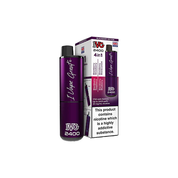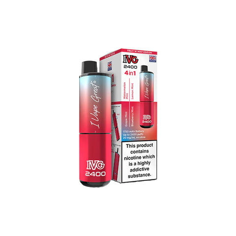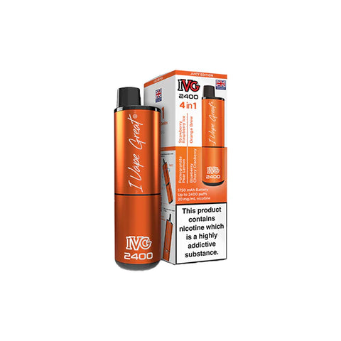 The IVG 2400 Disposable Pod Vape Kit 20mg is a versatile and convenient vaping device designed to deliver up to 2400 puffs from a single unit. Featuring a 4-in-1 multi-edition design, this kit includes four pre-filled pods, each containing 2ml of 20mg nicotine salt e-liquid, allowing users to effortlessly switch between four distinct flavours by simply rotating the device. Powered by a robust 1750mAh battery and equipped with mesh coil technology, the IVG 2400 ensures consistent flavour delivery and a smooth mouth-to-lung vaping experience. Ideal for those seeking variety and long-lasting performance without the hassle of refilling or recharging, this disposable vape kit combines ease of use with premium flavour options, making it perfect for on-the-go vaping.